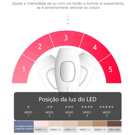 Com 500.000 flashes, 5 níveis de intensidade e compatível com todas as áreas do corpo, ele é seguro até para peles sensíveis. Além de eliminar pelos, estimular o colágeno e combater manchas e acne!
